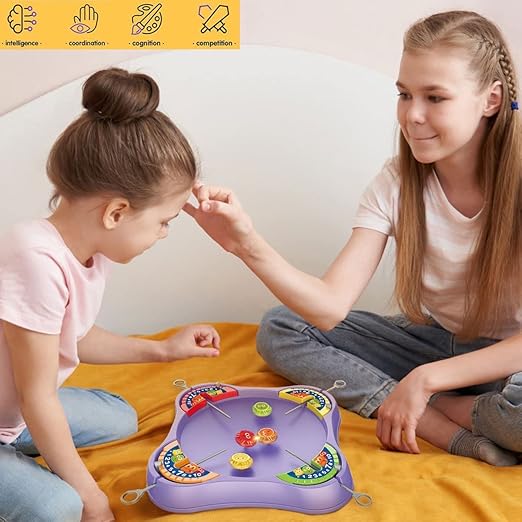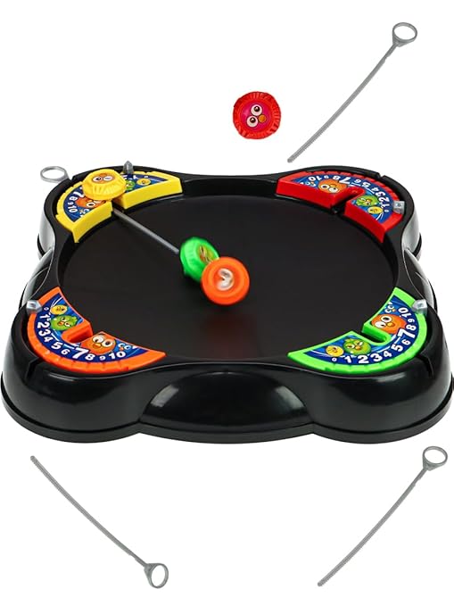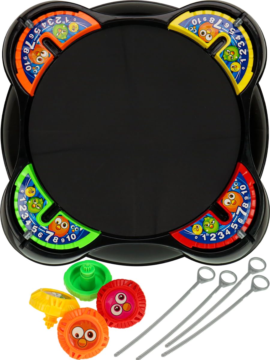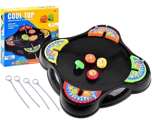 ⑤ Scoring System – Players earn points as tops spin; first to 10 wins ⑥ Age-Appropriate Fun – Recommended for ages 3–15+, supporting social and motor skill development