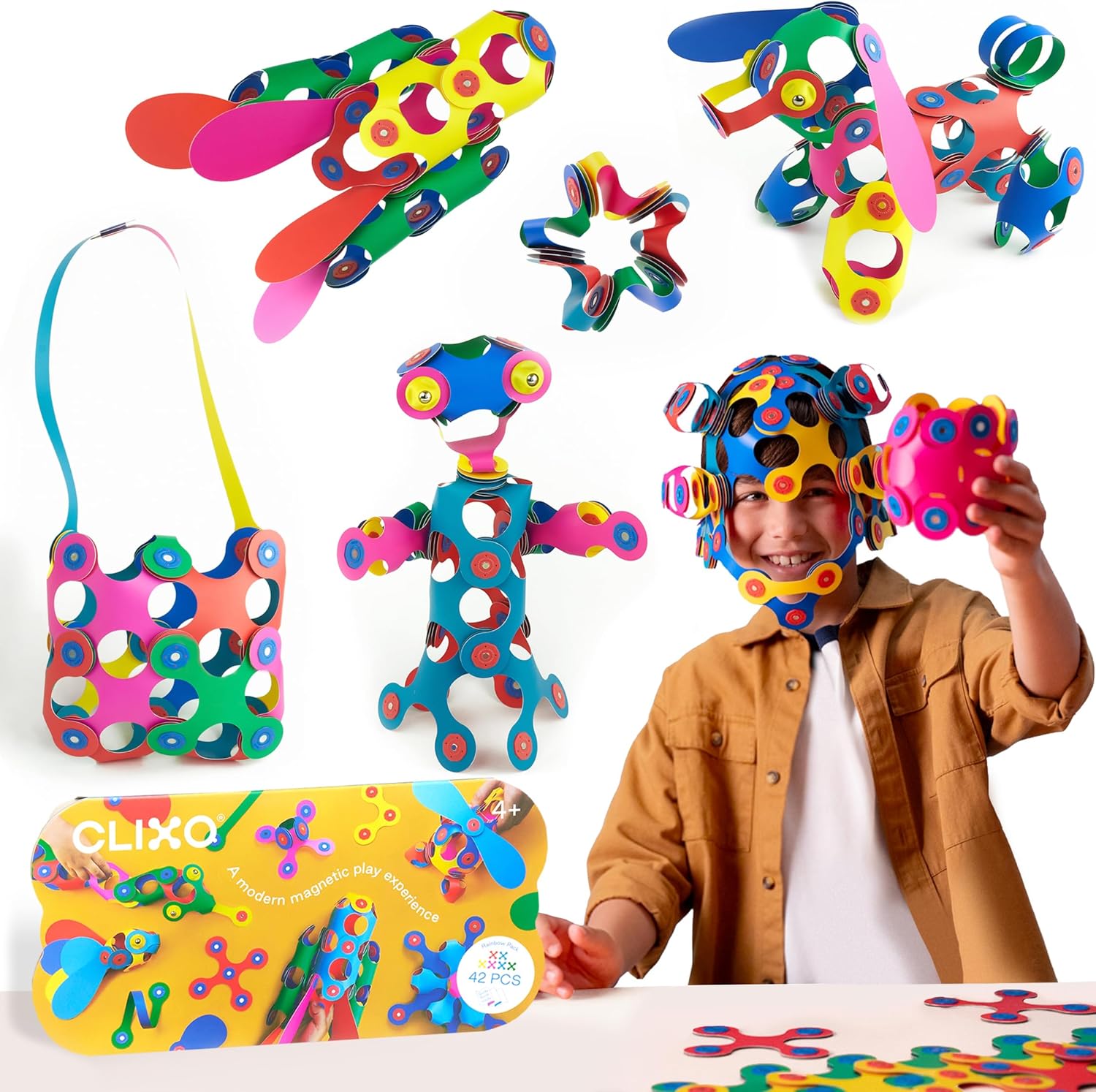 Unleash unlimited creativity with the Clixo Rainbow 42-Piece Pack – the flexible, snap-and-build magnetic toy that transforms your child's imagination into vibrant 3D creations! Lightweight, portable, and mess-free, Clixo offers endless open-ended play by combining the magic of magnets with modern design and STEM education principles. Whether at home or on-the-go, kids can click, snap, and fold their way to flying creatures, spinning tops, wearable art, and beyond!