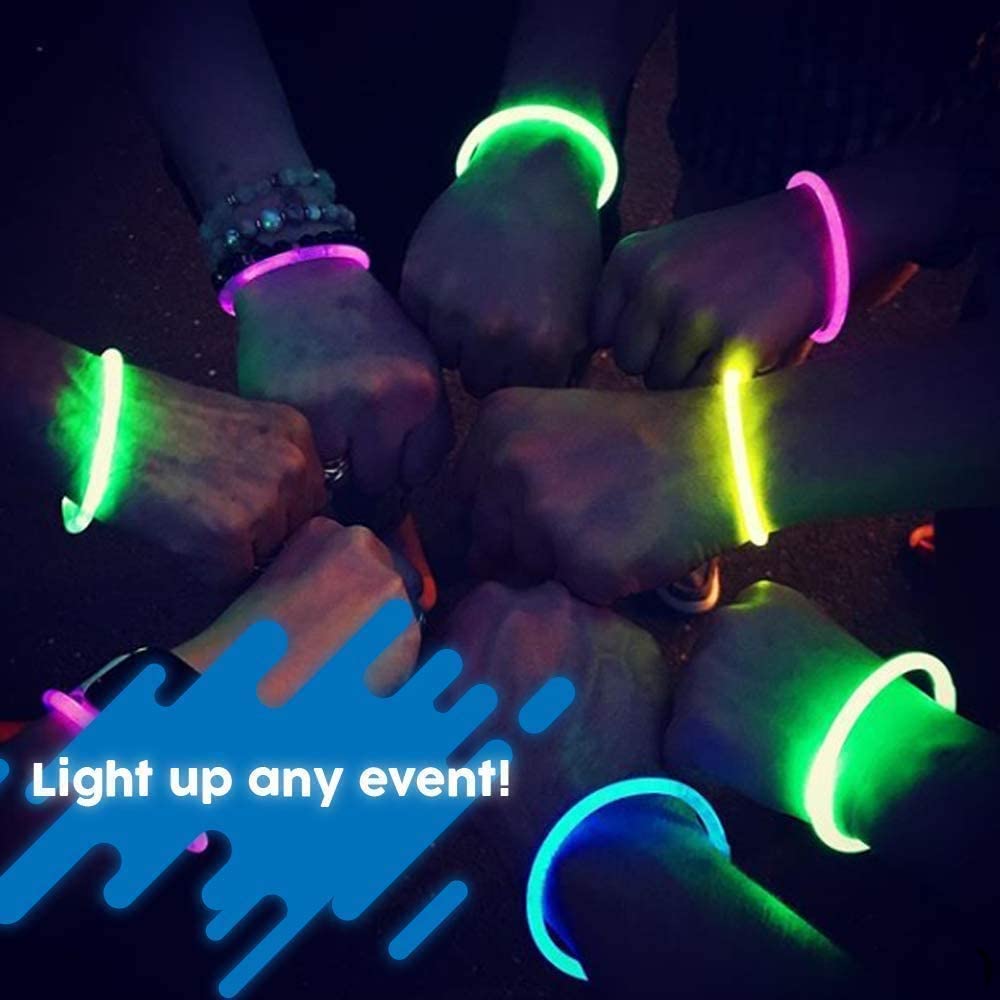 Durable, non-toxic glow sticks that glow for 6–10 hours.