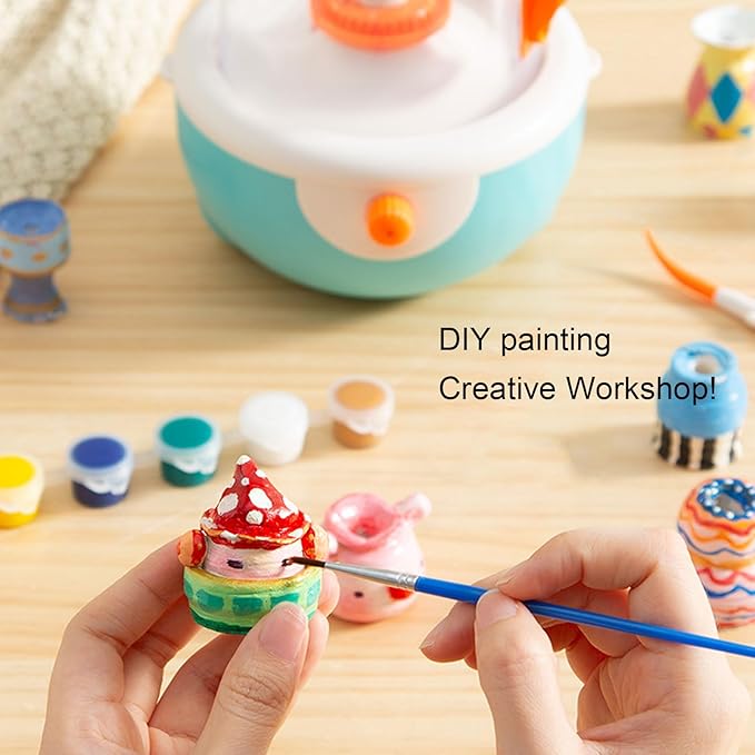 5️⃣ Shape & Decorate – Throw clay, let dry, then paint with included materials.
