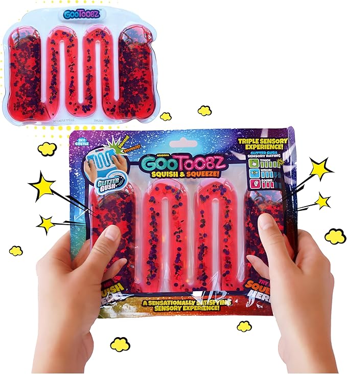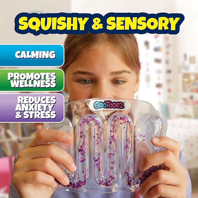 A squeezable sensory tube toy filled with colorful gel, glitter, and beads. Designed for calming, tactile play, this mess-free fidget provides a satisfying sensory experience to help relieve stress, improve focus, and keep hands busy.