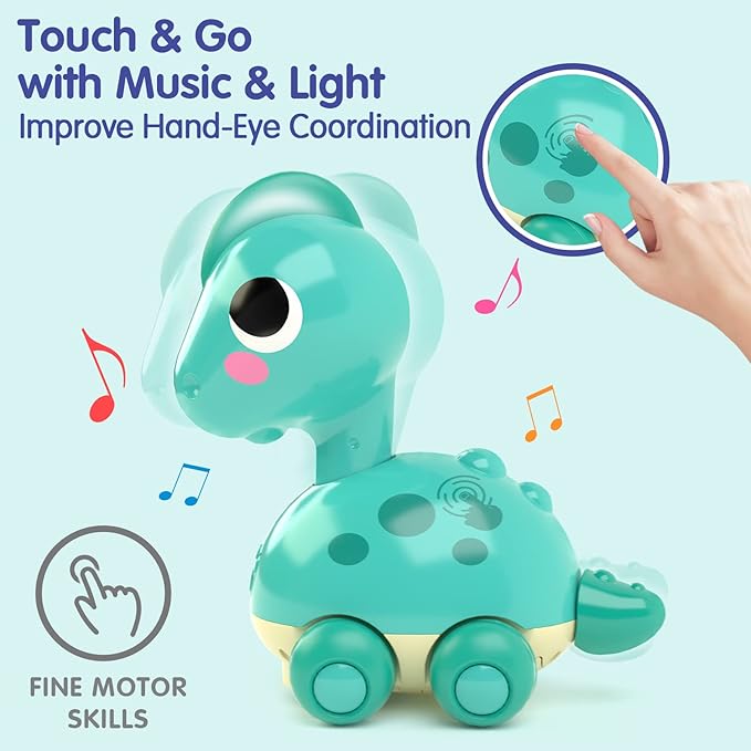 A charming sensor-activated crawling toy designed to encourage infants (approx. 6–12 months) to crawl and explore. It plays cheerful tunes and lights up when touched, features a clever “Bump & Go” movement pattern to avoid obstacles safely, and offers two versatile play modes with auto shut-off and volume control.