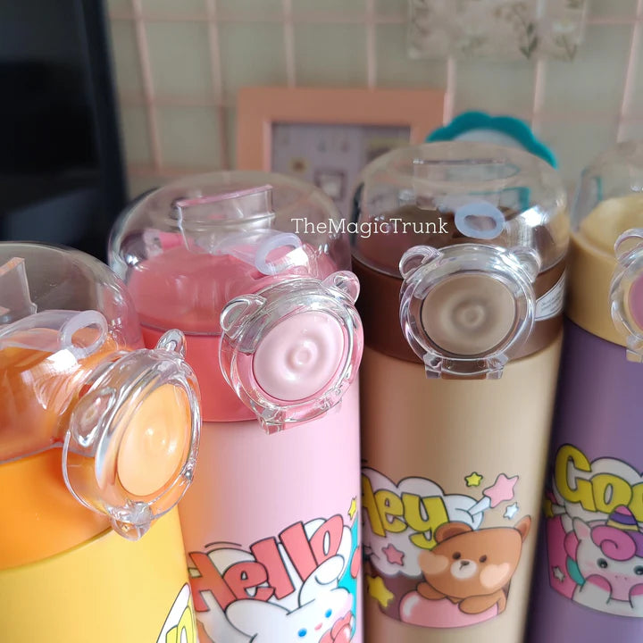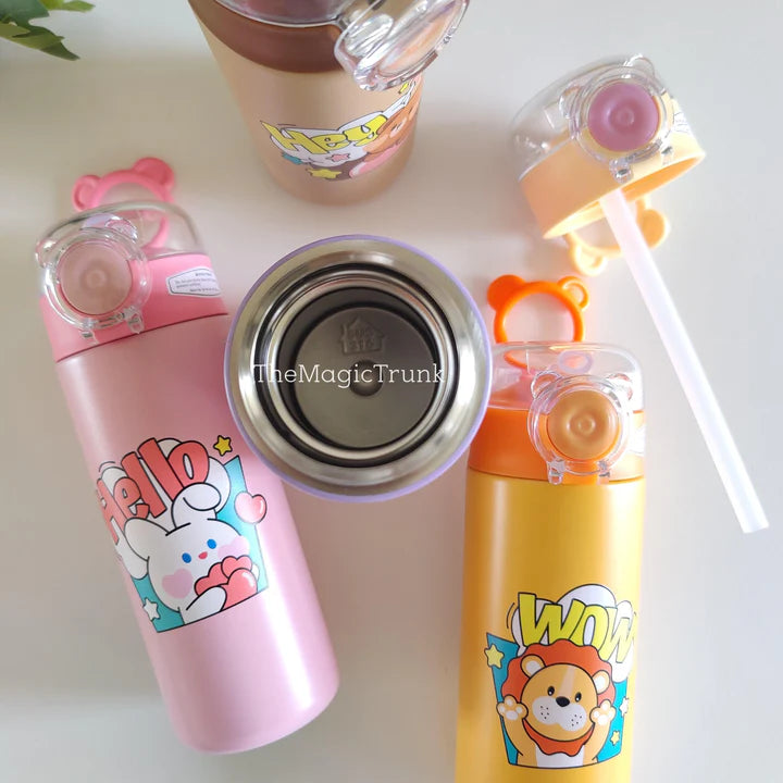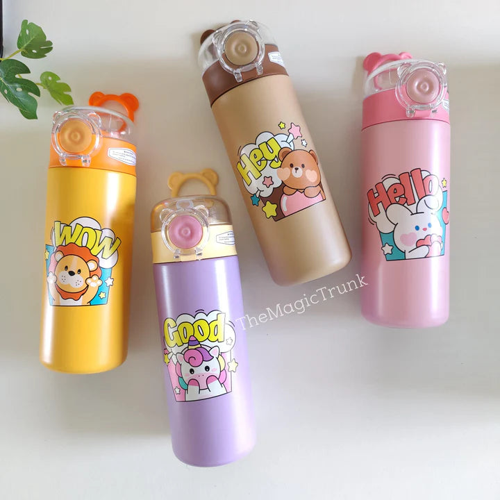 Bring joy to every sip with this adorable insulated stainless steel sipper bottle! Designed with lovable characters like the Unicorn, Lion, Bear, and Bunny, this bottle keeps drinks hot or cold for hours—perfect for school, travel, or home.
